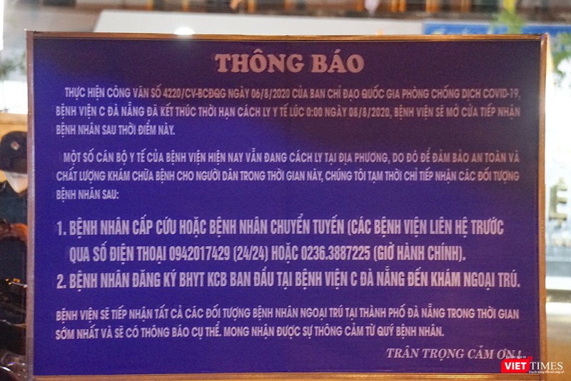 Bệnh viện C Đà Nẵng là nơi phát hiện ca mắc COVID-19 (bệnh nhân 416) đầu tiên ở Đà Nẵng trong đợt dịch COVID-19 lần 2 khởi phát vào ngày 24/7. Và với những diễn biến phức tạp của dịch bệnh xảy ra sau đó, bắt đầu từ 0h ngày 28/7, Bệnh viện C và 2 bệnh viện khác của Đà Nẵng được phong tỏa, cách ly y tế.