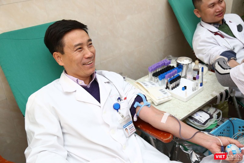 PGS.TS. Đoàn Quốc Hưng - Phó Hiệu trường Trường Đại học Y Hà Nội và các thầy thuốc của Bệnh viện Hữu nghị Việt Đức tham gia hiến máu phục vụ điều trị