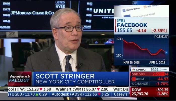 Scott Stringer - Kiểm soát viên của New York đang nắm giữ 1 tỷ USD phần vốn của Facebook, đã yêu cầu một cuộc cải tổ lớn trong Hội đồng quản trị Facebook sau vụ bê bối Cambridge Analytica. Đồng thời, đề cử 3 giám đốc mới khác có kinh nghiệm về dữ liệu và đạo đức để thay thế Mark, và giúp điều hành Facebook trở nên bảo mật hơn.