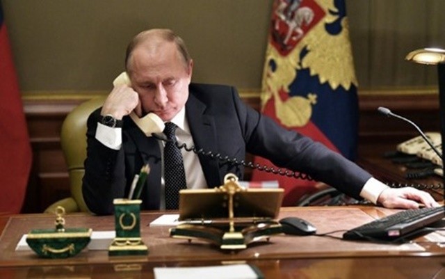 Tổng thống Putin điện đàm bằng chiếc điện thoại màu vàng để bàn quen thuộc
