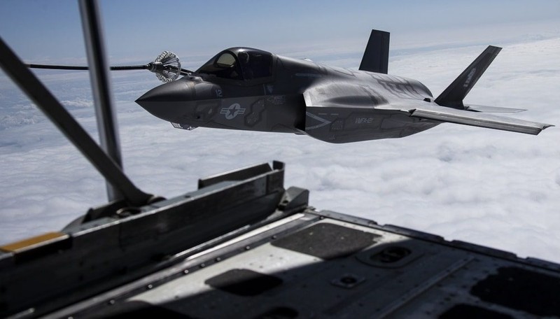Các máy bay tiêm kích tàng hình F-35B tiếp dầu trên Biển Đông. Ảnh Military.com