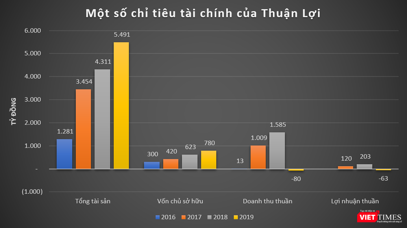 Bước sang năm 2019, dữ liệu của VietTimes cho thấy, doanh thu thuần của Thuận Lợi bất ngờ đạt mức âm 80 tỉ đồng. Đối với doanh nghiệp bất động sản, tình trạng này thường xảy ra khi các khoản giảm trừ doanh thu quá lớn. Mà nguyên nhân chủ yếu là do các dự án đang trong giai đoạn hoàn thiện một số hồ sơ, thủ tục nên các hợp đồng chuyển nhượng quyền sử dụng đất chưa đủ điều kiện để ghi nhận doanh thu.