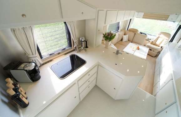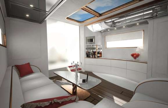 Khu bếp đa chức năng rất nhiều các tiện ích cao cấp và các thiết bị, từ một máy xay pha cà phê và một máy rửa chén bát lớn lớn, khoang phòng khách có thể nhanh chóng chuyển đổi thành phòng ngủ lớn với hai giường đôi.