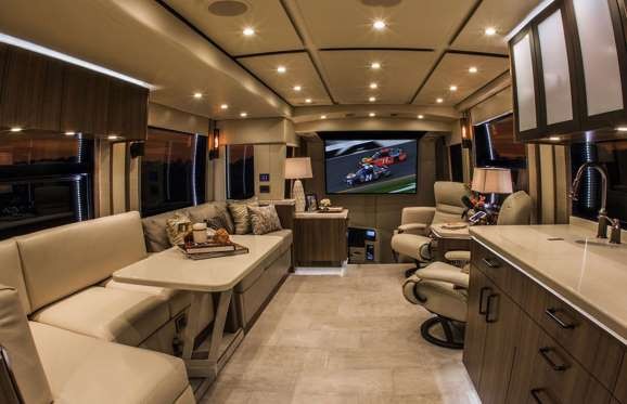 Marathon Coach cũng là công ty sản xuất các xe Prevost motorhomes cao cấp, nội thất của xe có xu hướng là bản hòa tấu của màu sắc và xa hoa. Nguyên mẫu của năm 2017 chính là loại ngôi nhà trên bánh xe Motorhome dành cho ngôi sao Hollywood hay một ca sĩ ngôi sao đang lên.