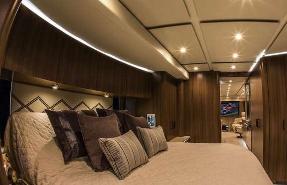 Phòng ngủ thực sự là của một phòng khách sạn năm sao sang trọng, được thiết kể vượt tất cả những gì mà bạn mong muốn. Căn nhà di động cũng có tính năng tự động hóa dạng smarthomes, sử dụng iPad Air chủ sở hữu có thể kiểm soát tất cả mọi thứ từ ánh sáng đến điều hòa không khí.