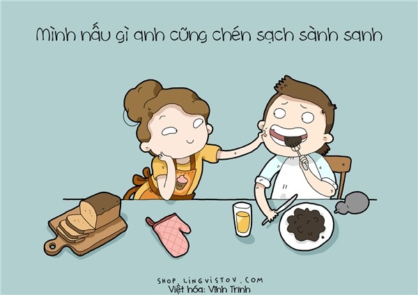Dù món ấy mặn chát hay cháy đen thui, anh vẫn ăn ngấu nghiến như món ăn nhà hàng 5 sao. Thương gì đâu!