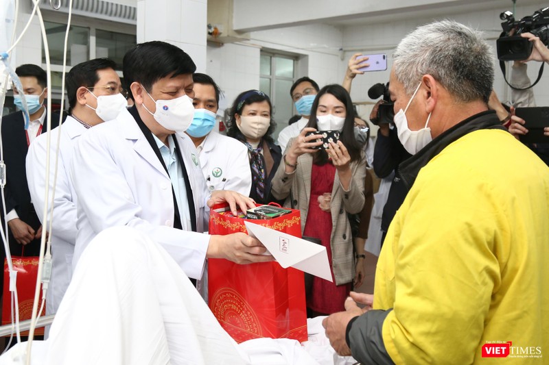 Bộ trưởng Nguyễn Thanh Long ân cần thăm hỏi và tặng quà, động viên các bệnh nhân ở BV Việt Đức và BV Nhi TW yên tâm điều trị |
