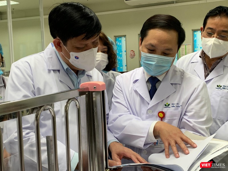Tại BV Nhi TW, PGS.TS Trần Minh Điển - Phó Giám đốc phụ trách BV - báo cáo với Bộ trưởng Nguyễn Thanh Long hoạt động của BV năm qua: Đã khám cho trên 1 triệu trẻ em, điều trị nội trú trên 100.000 bệnh nhi và phẫu thuật 30.000 ca. Hầu hết các ca là bệnh khó và phức tạp được chuyển từ tuyến dưới lên. Khi có dịch COVID-19, BV đã thực hiện nhiệm vụ tư vấn và hỗ trợ Bộ Y tế phòng, chống dịch bệnh, trong đó có xét nghiệm 23.000 mẫu.