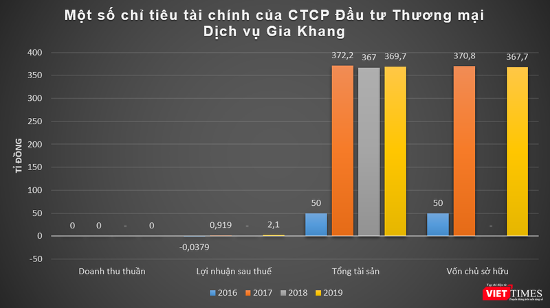 Dữ liệu của VietTimes cho thấy, trong giai đoạn 2016 - 2019, Gia Khang (công ty mẹ) không phát sinh doanh thu. Năng 2019, công ty này báo lãi sau thuế 2,1 tỉ đồng. Tại ngày 31/12/2019, quy mô tổng tài sản của Gia Khang đạt 369,7 tỉ đồng, vốn chủ sở hữu ở mức 367,7 tỉ đồng.