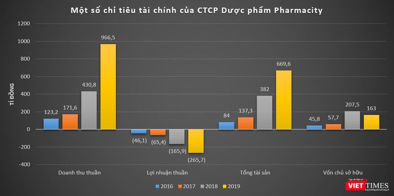 Dữ liệu của VietTimes cho thấy, trong giai đoạn 2016 - 2019, doanh thu của Pharmacity tăng gấp 7,8 lần, từ mức 123,2 tỉ đồng năm 2016 lên 966,5 tỉ đồng năm 2019.