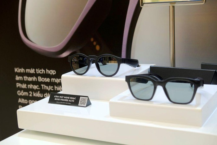 Tiếp đến là một sản phẩm di động mới - Kính mắt kiêm luôn tai nghe không dây Bose Frames - được ra mắt tại thị trường Việt Nam vào tháng 7/2019 với thiết kế thời trang, các thiết bị điện tử được tích hợp hết ở phần gọng nhỏ gọn. Bose Frames mang đến âm thanh truyền trực tiếp đến tai người dùng mà không anh hưởng đến người xung quanh. Kính được bán với giá 5.990.000 đồng.