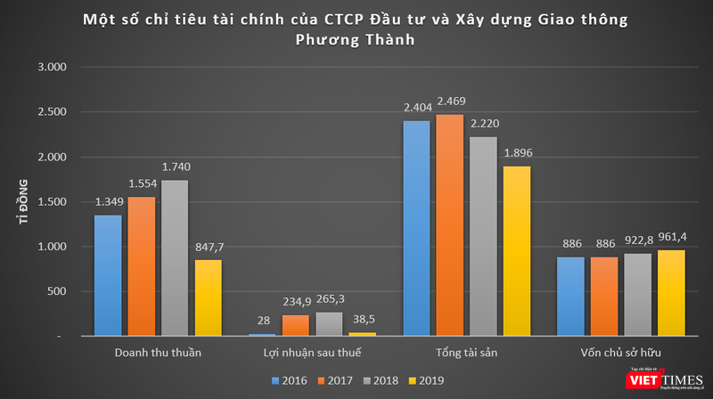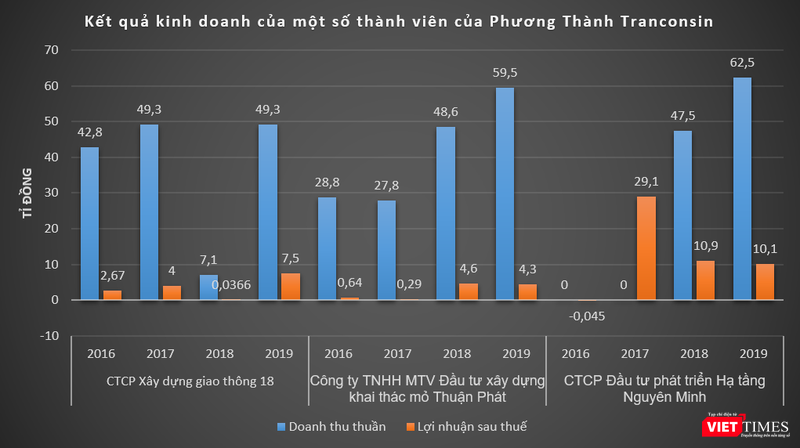 Dữ liệu của VietTimes cho thấy, các năm qua, doanh thu của Phương Thành Tranconsin đều đạt cả nghìn tỉ đồng mỗi năm. Trong đó, năm 2017 và 2018, công ty này ghi nhận doanh thu thuần đạt lần lượt 1.554 tỉ đồng và 1.740 tỉ đồng, báo lãi sau thuế lần lượt 234,9 tỉ đồng và 265,3 tỉ đồng.