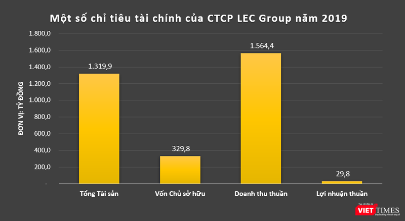 Dữ liệu của VietTimes cho thấy, năm 2019, LEC Group ghi nhận doanh thu thuần đạt 1.564,4 tỷ đồng, báo lãi thuần 29,8 tỷ đồng. Tính đến cuối năm ngoái, quy mô tổng tài sản của công ty này đạt mức 1.319,9 tỷ đồng, gấp 4 lần quy mô vốn chủ sở hữu.