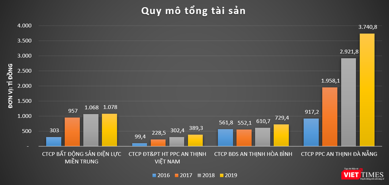Dữ liệu của VietTimes cho thấy, trong giai đoạn 2016 – 2019, quy mô tổng tài sản của PPC An Thịnh Đà Nẵng tăng cả nghìn tỉ đồng mỗi năm cho thấy sự quan tâm đặc biệt của giới chủ PPCAT tới dự án này. Tính đến cuối năm 2019, tổng tài sản của doanh nghiệp này đạt 3.740,8 tỉ đồng, cao gấp 4,95 lần vốn chủ sở hữu.