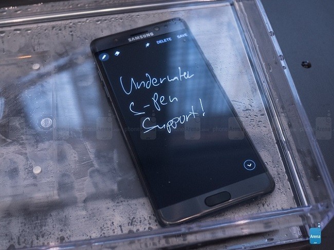 Cải tiến đáng chú ý nhất của chiếc bút S Pen này là khả năng chống thấm nước. Thậm chí, bạn có thể dùng bút S Pen để phát thảo trên màn hình Galaxy Note 7 dưới môi trường nước mà không sợ bất kỳ hỏng hóc nào cho phụ kiện này. Lưu ý rằng bút cảm ứng của Galaxy Note 5 không làm được điều này. Tất nhiên, để tính năng này hoạt động thì Galaxy Note 7 cũng đã hỗ trợ chuẩn IP68 cho khả năng kháng bụi, nước. Trong khi đó, màn hình cảm ứng của Galaxy S7 và S7 Edge sẽ không nhận bất kể đầu vào cảm ứng (tác động cảm ứng) nào khi lặn dưới nước.