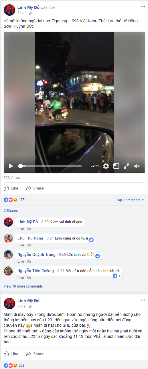 Ca sĩ Mỹ Linh tỏ ra khá tiếc nuối vì bận rộn với công việc mà không thể xem trận đấu của đội tuyển U23 Việt Nam.
