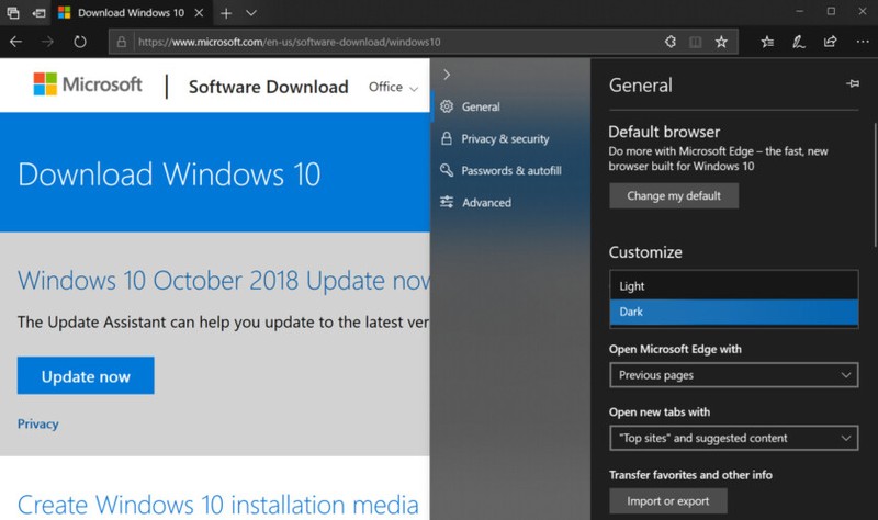Đặt chế độ tối cho Windows 10 không ảnh hưởng đến trình duyệt Microsoft Edge, vì vậy bạn sẽ cần làm tối giao diện theo cách thủ công. Thực hiện theo các bước sau: