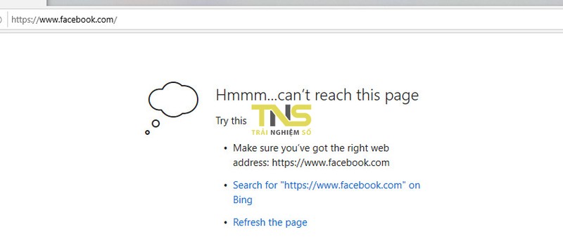 Bước 5: Lưu lại file hosts và hệ thống sẽ có tác dụng ngay. Lúc này khi vào trang web đó bằng Microsoft Edge, bạn sẽ thấy thông báo không truy cập được như ảnh dưới: