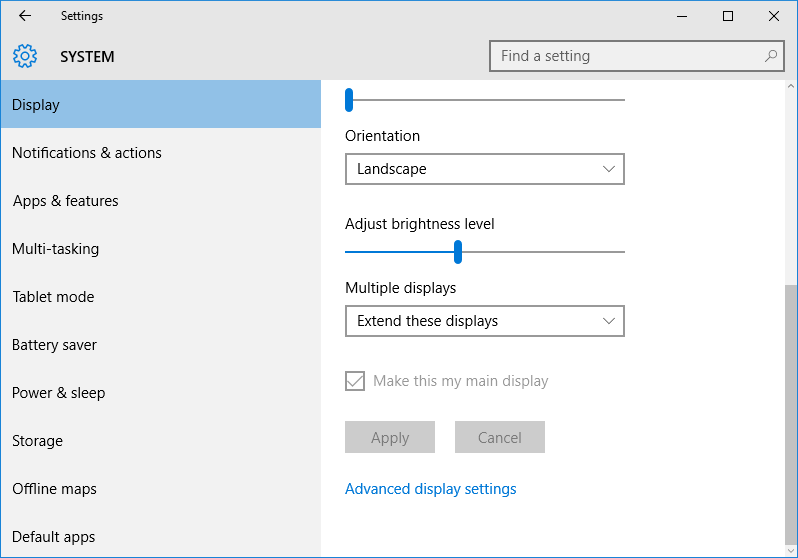 Bạn có thể thực hiện việc này dễ dàng hơn trên các phiên bản cũ hơn của Windows 10. Việc cắt giảm tính năng của ứng dụng Control Panel và sự xuất hiện của ứng dụng Settings mới đã làm cho các thao tác đơn giản trên Windows 10 trở nên phức tạp hơn. Nghĩa là, tuỳ chọn bạn cần vẫn còn ở đó nhưng bạn cần phải thực hiện nhiều bước hơn nếu muốn đặt các độ phân giải khác nhau khi ở chế độ đa màn hình.