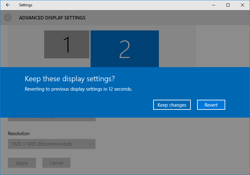 Khi thấy hộp thoại xác nhận xuất hiện, bạn nhấn nút Keep. Độ phân giải của màn hình bạn đã chọn sẽ được thay đổi. Độ phân giải của màn hình kia không bị ảnh hưởng. Nếu không muốn lưu lại các thay đổi, bạn nhấn nút Revert.