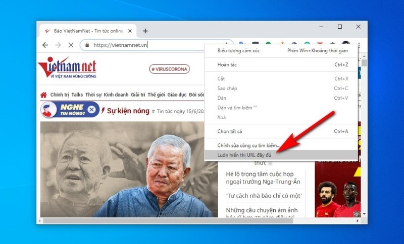 Sau khi kích hoạt tùy chọn mới, bạn sẽ thấy địa chỉ “https://vietnamnet.vn” thay vì “vietnamnet.vn”.