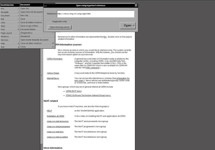 Tất nhiên, giao diện “trình duyệt” này không hề giống các trình duyệt hiện đại ngày nay. Bạn sẽ không thấy một thanh nhập địa chỉ trang web, mà phải vào phần “mở tài liệu” rồi chọn mở đường dẫn. Trình duyệt cũng không hề hiện hình ảnh, bởi hình ảnh chỉ xuất hiện trên web vào năm 1992.