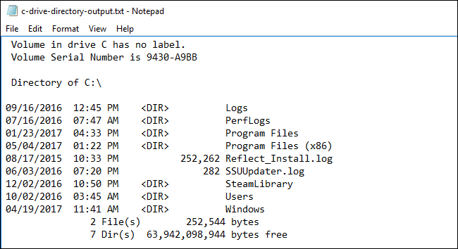 HowToGeek đưa ra một ví dụ, nếu muốn lưu phần xuất ra của hàm DIR vào file văn bản thay vì phải cuộn chuột trên Command Prompt, bạn sẽ cần sử dụng dòng lệnh này: