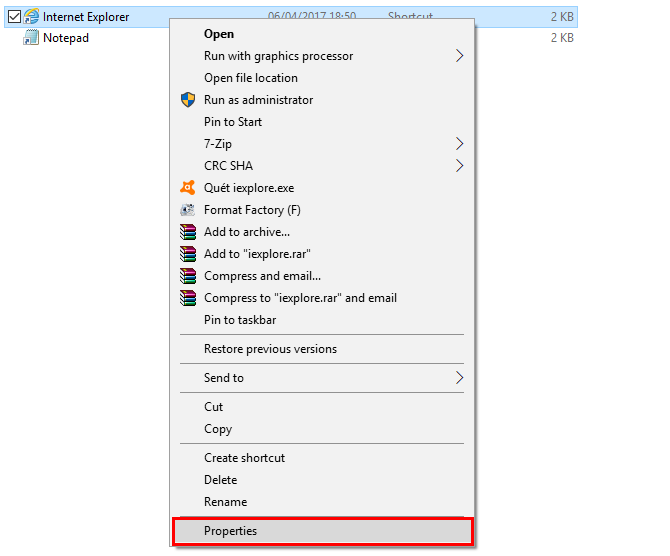 Cũng tìm đến biểu tượng Internet Explorer hay dùng, tìm cách bật cửa sổ Properties (xem ở phần dành cho Chrome) -> thêm -private vào cuối hộp Target (1 khoảng trắng, 1 dấu gạch ngang và private) -> nhấn OK rồi cấp quyền quản trị (nếu có) để hoàn tất.