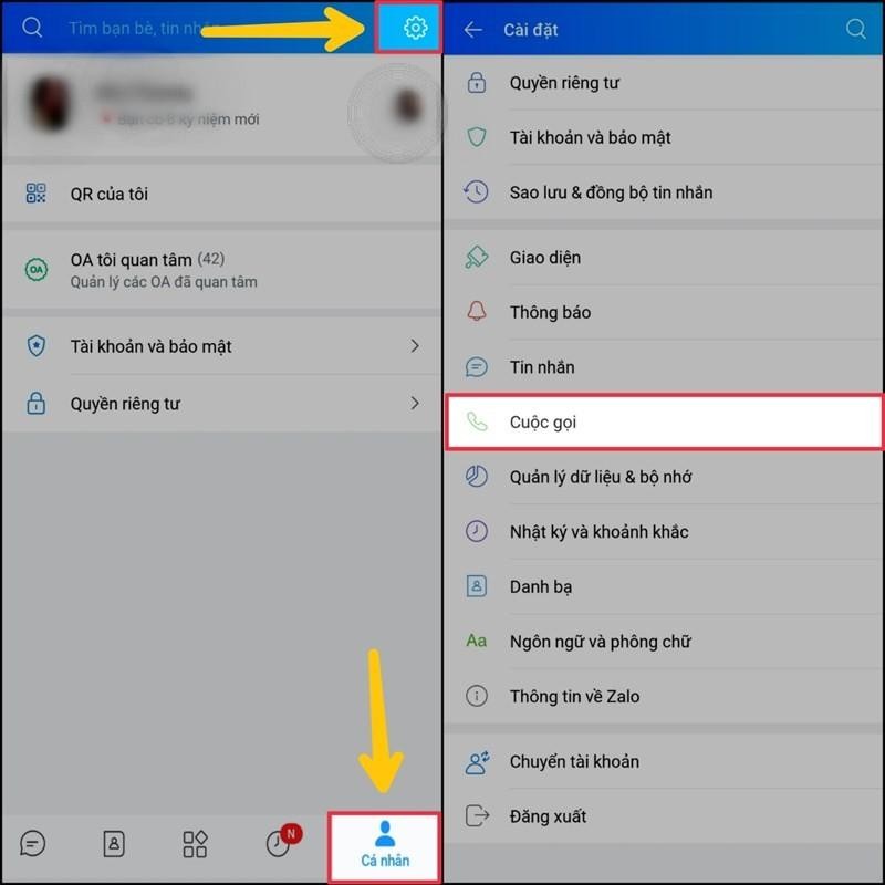 Bước 1: Mở ứng dụng Zalo trên điện thoại của mình lên > Chọn mục Cá Nhân > Chọn Cài đặt để tiến hành đổi nhạc chuông cuộc gọi Zalo.