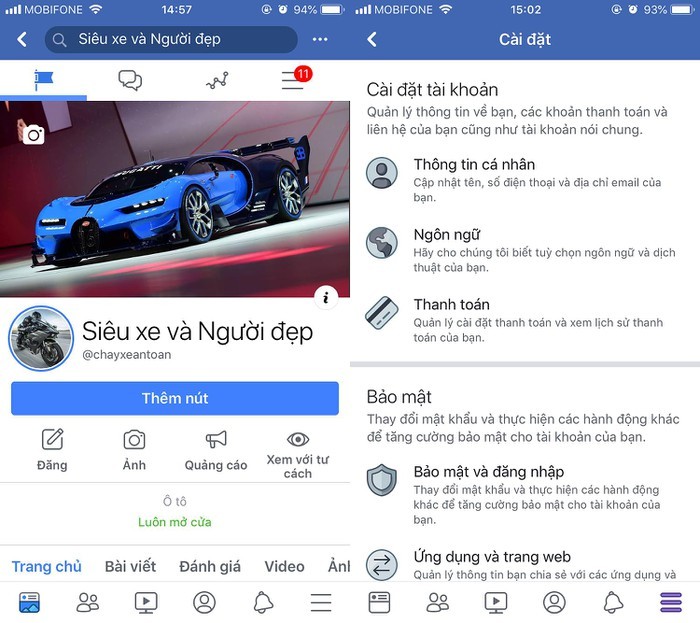 Truy cập vào phần menu bên trong ứng dụng Facebook. Ảnh: MINH HOÀNG