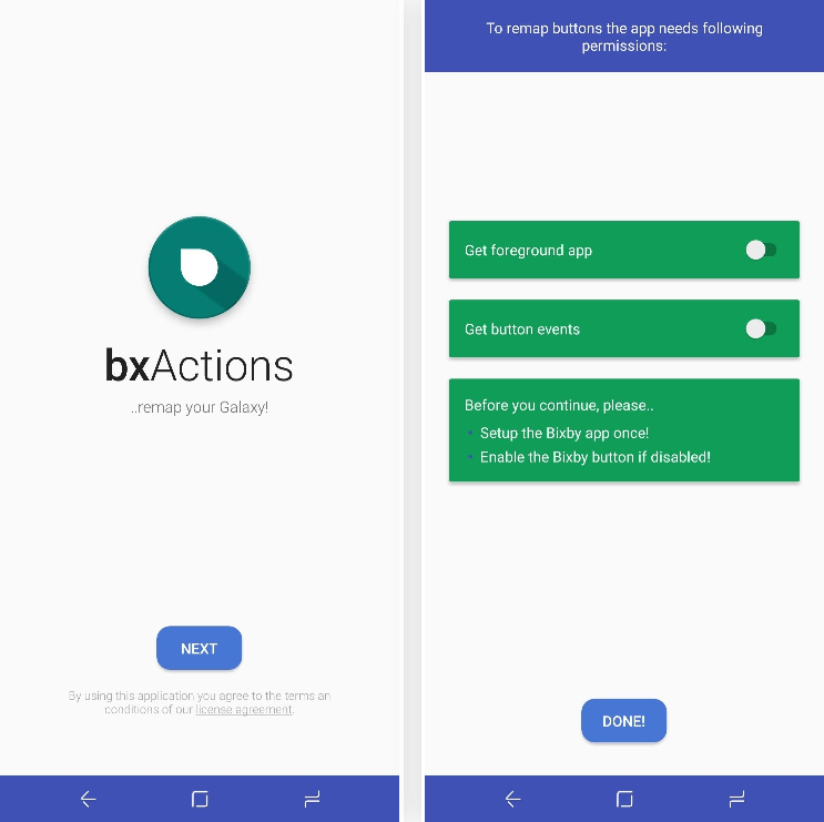 Để bắt đầu, người dùng cần chắc chắn phím Bixby đã được kích hoạt vì bxActions sẽ không hoạt động nếu tính năng này đã bị vô hiệu hóa. Thời lượng sử dụng pin có thể sẽ bị ảnh hưởng đôi chút bởi bxActions luôn chạy dưới dạng một ứng dụng nền.