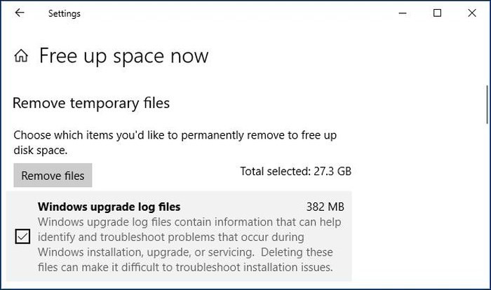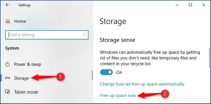 Bắt đầu từ bản cập nhật April 2018 của Windows 10, bạn giờ đây có thể xóa những file này sử dụng công cụ Free Up Space mới trên Settings. Để truy cập nó, bạn vào Settings > System > Storage > Free Up Space Now.