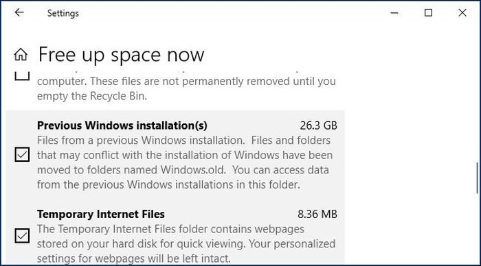 Đánh dấu chọn vào tùy chọn Previous Windows Installation(s) trong danh sách. Bạn sẽ thấy lượng không gian bạn sẽ tiết kiệm được ngay bên cạnh nó.