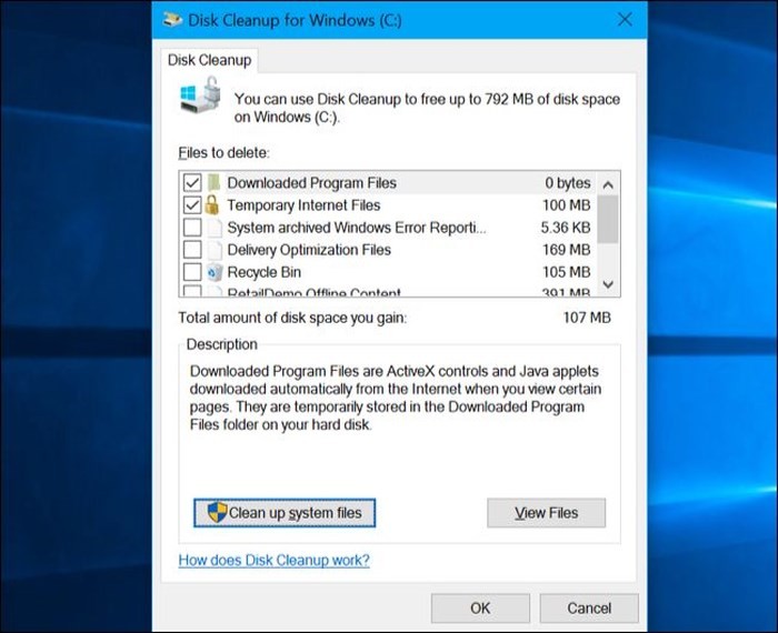 Trên cửa sổ Disk Cleanup, bạn nhấn nút Clean Up System Files.