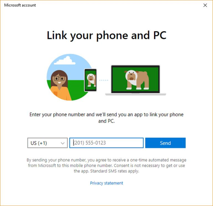 Kích vào Add a phone để bắt đầu quá trình kết nối. Lưu ý, bạn sẽ cần kết nối Internet và thông tin đăng nhập của Microsoft để thực hiện việc này. Như bạn nhìn thấy trong hình dưới, Microsoft sẽ gửi một ứng dụng đến smartphone Android của bạn. Vì vậy, bạn cần cung cấp số điện thoại của bạn. Kích vào nút Send và sau đó kiểm tra tin nhắn gửi đến điện thoại.