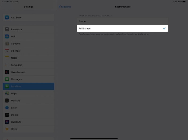 Các bước kích hoạt thông báo cuộc gọi đến FaceTime toàn màn hình trên iPad cũng tương tự như cách kích hoạt thông báo cuộc gọi đến toàn màn hình trên iPhone. Chi tiết như sau: