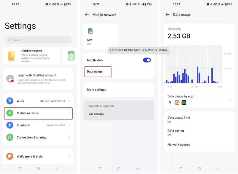 Thông tin dữ liệu mạng di động bạn đã sử dụng sẽ được hiển thị trong phần cài đặt của điện thoại Android. Các bước cần thực hiện để tìm mục chứa thông tin dữ liệu mạng di động sẽ khác nhau đôi chút đối với từng mẫu máy, nhưng nhìn chung chúng đều có điểm tương đồng. Đây là cách kiểm tra trên máy OnePlus