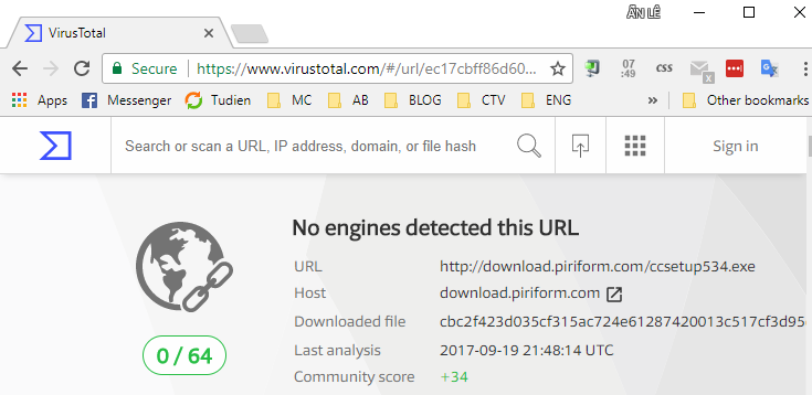 Nếu file sạch, điều đó có nghĩa không có trình antivirus nào phát hiện malware trên nó, không có nghĩa là nó an toàn. Phần nền antivirus không hoàn hảo và có thể chưa cập nhật malware mới, vậy nên để chắc chắn hãy đảm bảo bạn luôn tải chương trình từ một nguồn đáng tin cậy.
