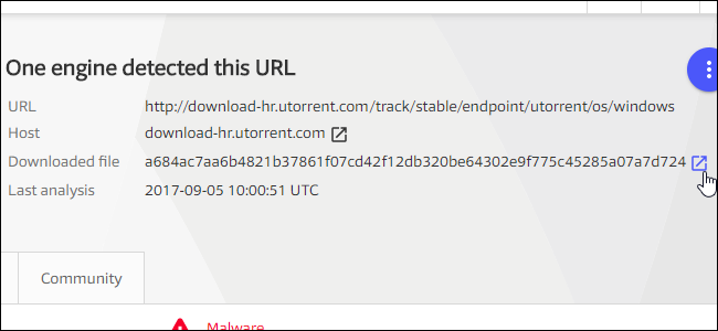 Nếu một trong những bộ máy antivirus phát hiện file có vấn đề, bạn sẽ thấy ghi chú về số lượng bộ máy antivirus phát hiện vấn đề với địa chỉ URL đó.