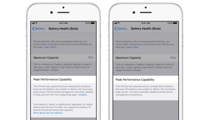 Theo Apple, pin của iPhone sẽ chỉ còn khoảng 80% công suất ban đầu nếu nó đã trải qua khoảng 500 lần sạc. Vì vậy, nếu khả năng sạc đầy của pin trên iPhone là ít hơn 80% công suất thiết kế ban đầu, nó được coi là đã bị mòn. Vấn đề là Apple đã không đưa ra bất cứ cảnh báo nào đến người dùng, trừ khi có một ai đó quá cẩn thận ghi chép lại số lần sạc pin cho thiết bị, nhưng có vẻ như không ai có thời gian để làm điều này.