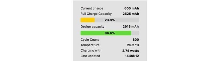 Để chắc chắn hơn về tình trang của pin, bạn có thể sử dụng thêm một công cụ kiểm tra của bên thứ 3 gọi là Pin dừa (coconut Battery), nhưng bạn phải truy cập bằng máy tính Mac vì tính năng này không có sẵn cho các thiết bị chạy Windows / Linux.