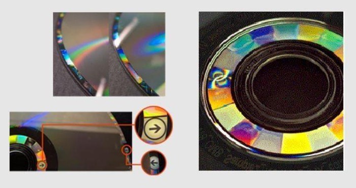 Trên vòng ngoài Mirror Mirror Band (OMB) mỏng, có một khu vực hiển thị chữ “Microsoft” sẽ hay đổi thành chữ “Genuine” khi bạn hơi nghiêng đĩa từ trái sang phải.