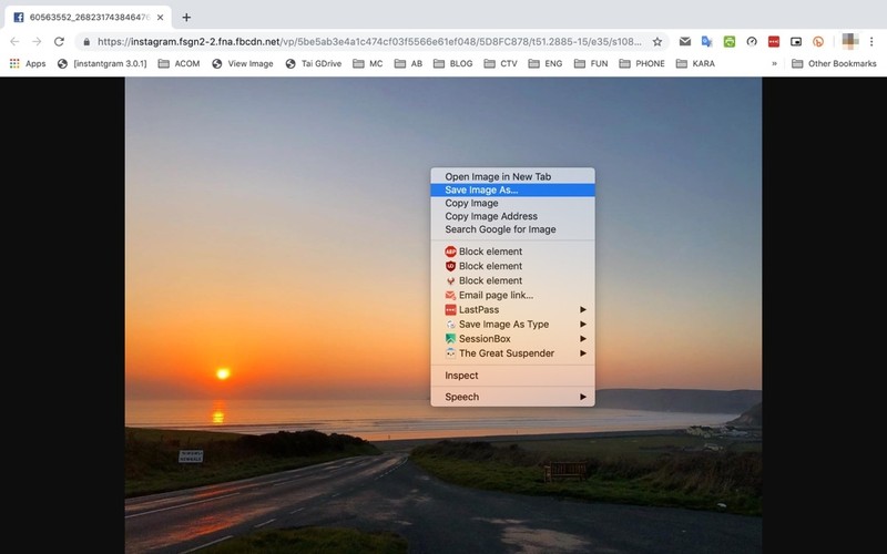 Không giống các trang mạng xã hội khác, như Facebook, bạn không thể nhấp chuột phải lên ảnh và chọn Save as. Tùy chọn Save as vẫn nằm ở đó, nhưng nó sẽ tải về trang web HTML, không phải file ảnh.