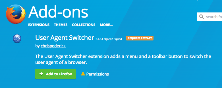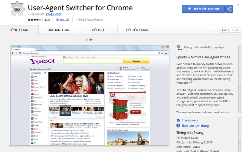 Bước 1: Đầu tiên, bạn cần cài đặt tiện ích mở rộng có tên User Agent Switcher tại đây. Khi hoàn tất, bạn hãy khởi động lại trình duyệt.