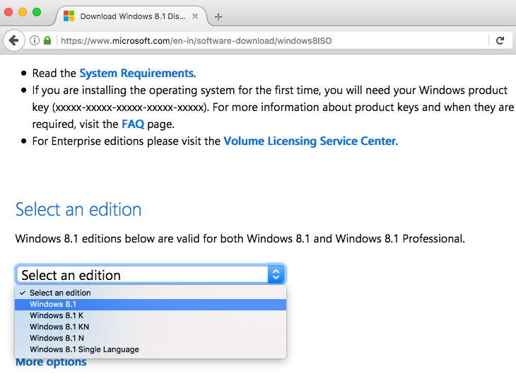 Nếu bạn thay đổi "chuỗi" nhận diện khi trình duyệt gửi yêu cầu đến các máy chủ web (hay còn gọi là User Agent) thành trình duyệt di động hoặc Mac, bạn sẽ được Microsoft cung cấp các đường dẫn trực tiếp để tải về file ISO cài đặt Windows.