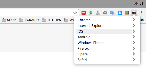 Bước 2: Tiếp theo, bạn nhấp chuột lên biểu tượng của extension ở phía trên góc phải của Chrome và chọn Agent iOS hay Android bất kỳ.
