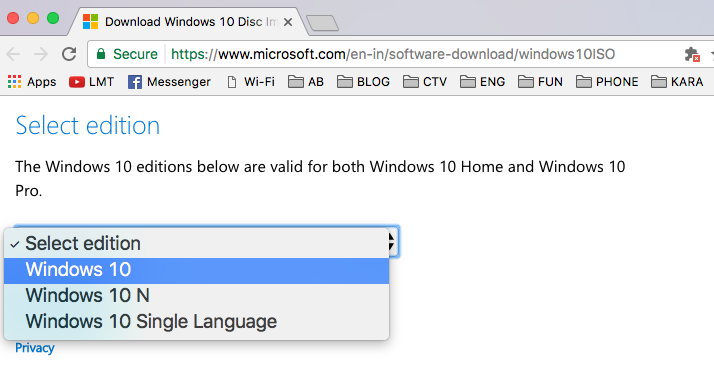 Bước 3: Bây giờ, bạn truy cập vào địa chỉ này nếu muốn tải file ISO của Windows 10 và tại đây nếu muốn tải file ISO của Windows 8.1.