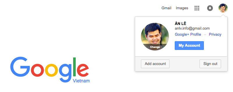 Cách lòng vòng hơn là truy cập vào Google.com, và sau đó nhấp vào ảnh đại diện ở phía trên góc phải.