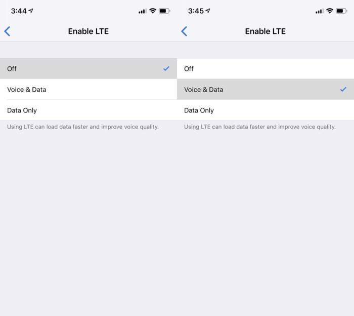 Sau đó bạn đợi khoảng 30 giây và chọn lại Voice & Data (thoại & dữ liệu) hoặc Data Only (chỉ dữ liệu). Đối với Android, người dùng chỉ cần tắt/bật dữ liệu di động hoặc chuyển máy sang Airplane mode (chế độ máy bay).