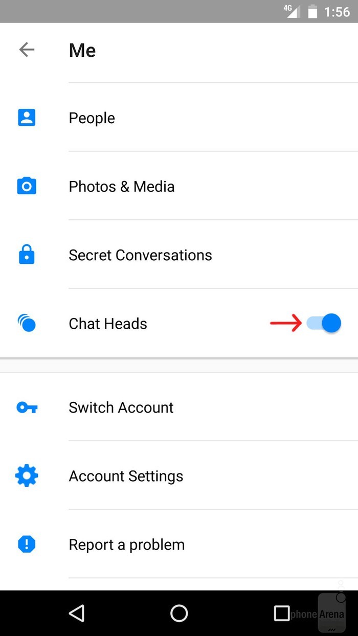 Bước 3: Cuộn xuống và bạn sẽ nhìn thấy tùy chọn Chat Heads với dấu màu xanh bên phải. Bấm vào đây để chuyển nó về màu xám, đồng nghĩa với Chat Heads đã bị vô hiệu hóa.